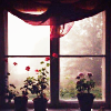 Description: A window with plants in front of it and a bright light behind